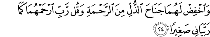 "Ask God to be merciful with your parents as they have been merciful to you when you were young, but if it becomes clear to you that they insist on disbelief, then do not ask God to forgive them because God has determined to send disbelievers to the Fire."